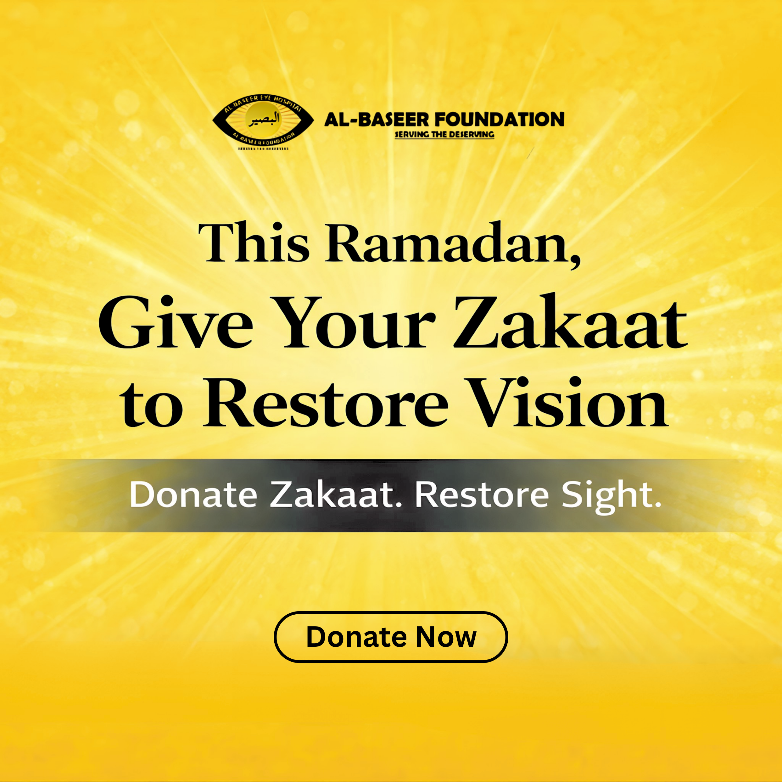 Zakat is more than a financial obligation—it is a powerful act of purification and mercy. This Ramadan, give your Zakat to Al-Baseer Foundation and help restore sight and dignity for those who cannot afford treatment. You may choose to donate specifically to an Eye Camp or Eye Surgery program, and your contribution will be used only for that selected cause. If you enter a Zakat amount, we will allocate it where it is needed most—supporting eye camps, surgeries, medicines, and essential patient care—so your Zakat reaches the most deserving and creates lasting impact.